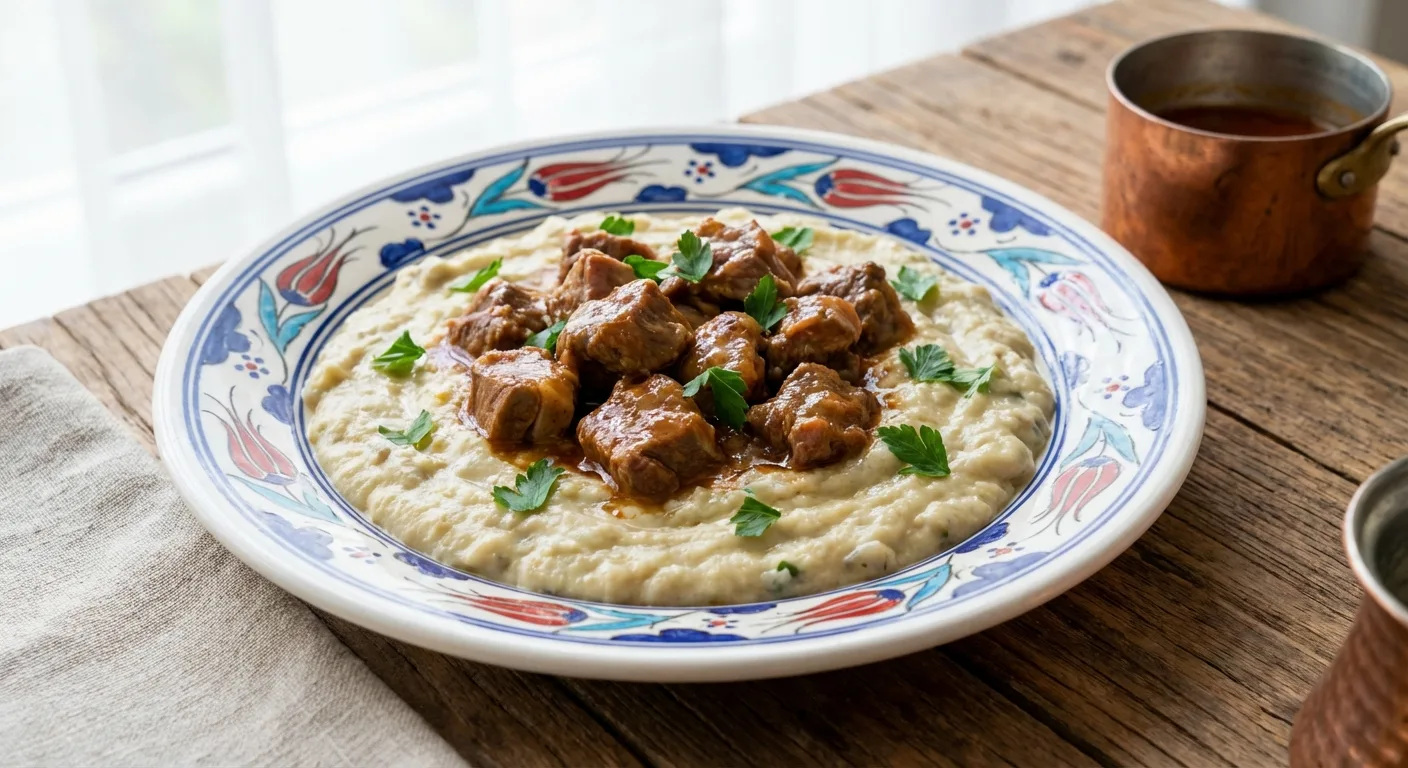 Hünkar Beğendi, Osmanlı mutfağının zarif lezzetlerinden biri olup, kökeni 19. yüzyıla, Sultan Abdülaziz dönemine dayanır. Adı, "Hünkar" kelimesi ile "beğendi" kelimesinin birleşiminden gelir; bu da yemeğin Sultan tarafından beğenildiğini ifade eder. Patlıcan püresi üzerine yerleştirilen kuzu etinin zengin aromaları, bu yemeği hem saray sofralarının vazgeçilmezi hem de günümüzde Türk mutfağının sembollerinden biri haline getirmiştir.