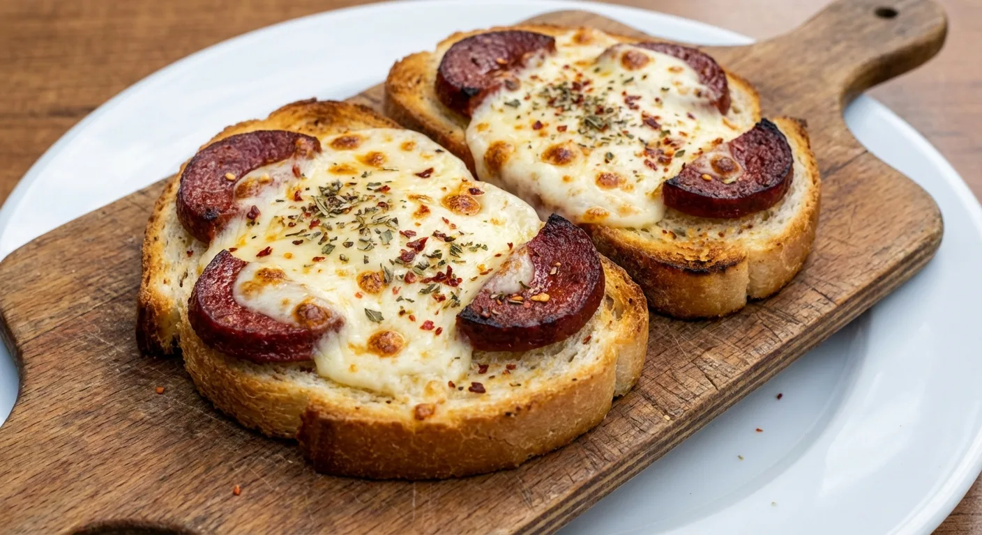 Fırında sucuklu kaşarlı ekmek, Türk mutfağının vazgeçilmez lezzetlerinden biri olarak, özellikle kahvaltılarda ve atıştırmalık olarak sıkça tercih edilir. Bu yemek, Osmanlı dönemine kadar uzanan zengin et ve peynir kültürünün bir yansımasıdır; sucuk, kıymadan yapılan ve baharatlarla zenginleştirilen bir sosis türüdür. Geleneksel Türk ekmeği üzerine yerleştirilen sucuk ve kaşar peyniri, fırında pişirilerek oluşturulan bu lezzetli kombinasyon, hem sosyalleşme anlarının hem de samimi aile buluşmalarının keyifli bir parçası olmuştur.