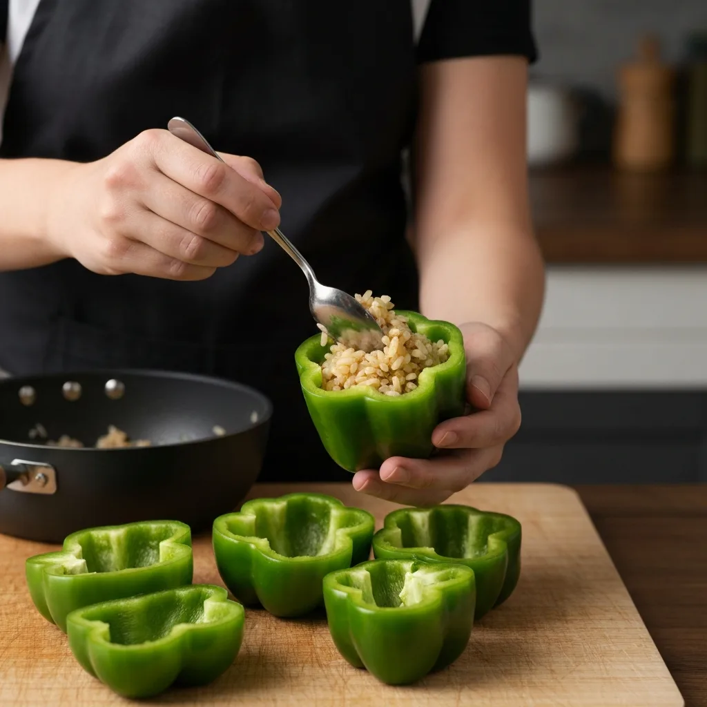 Demlenen iç harcı, biberlerin içinde biraz boşluk kalacak şekilde doldurun.