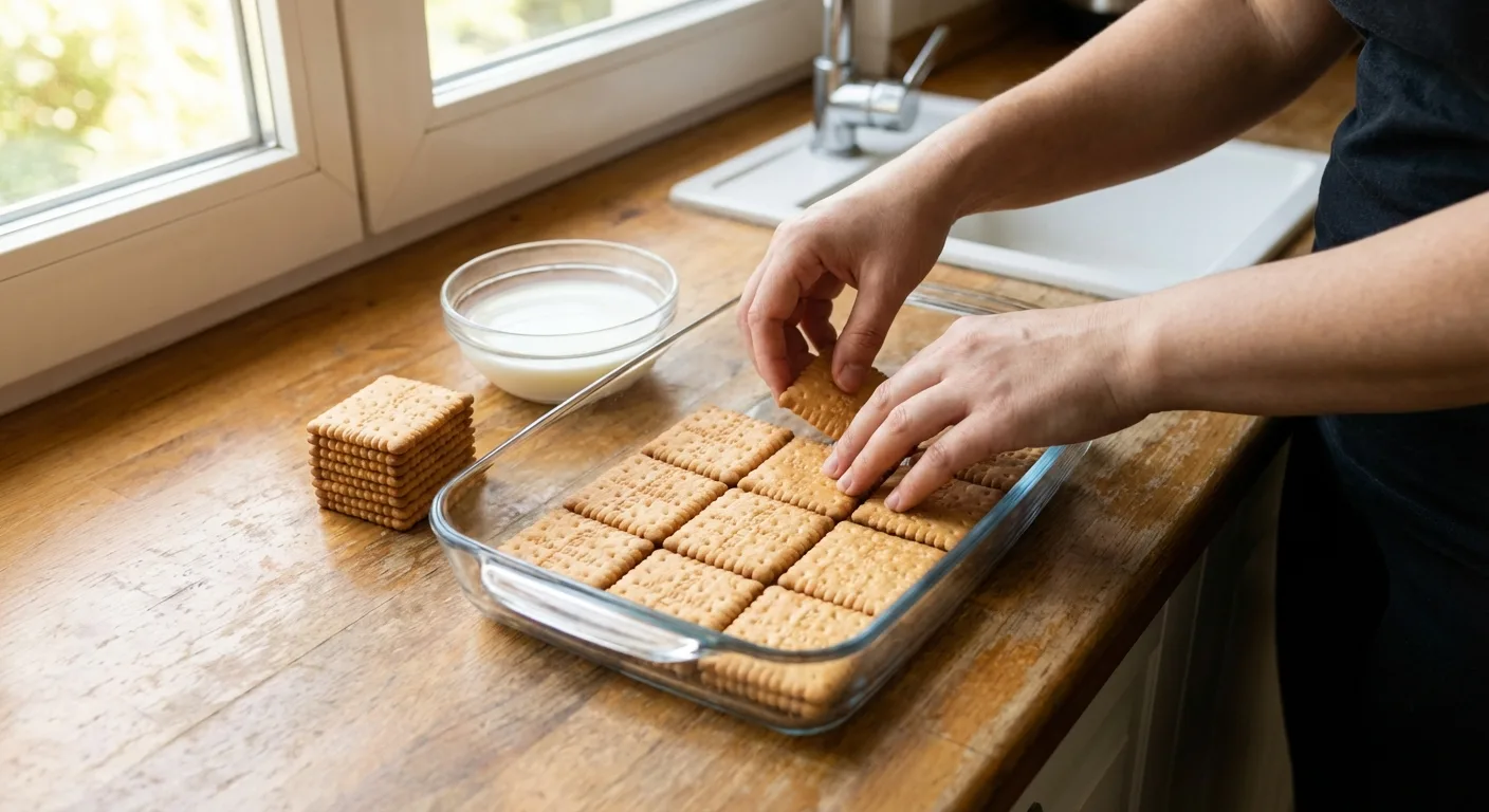 Bisküvilerin üzerine tekrar puding dökün ve yayın. Bisküvi ve puding bitene kadar bu işlemi kat kat tekrarlayın. En üst katman puding olmalı.