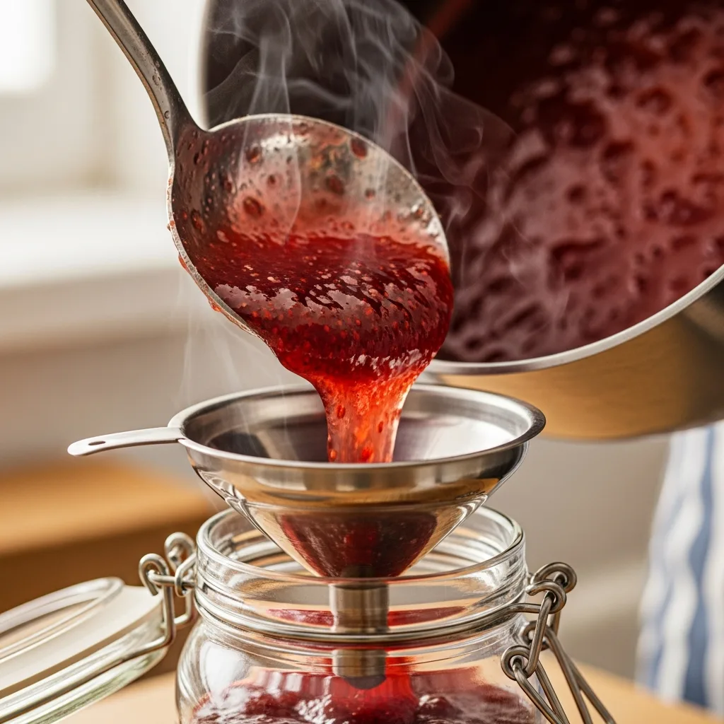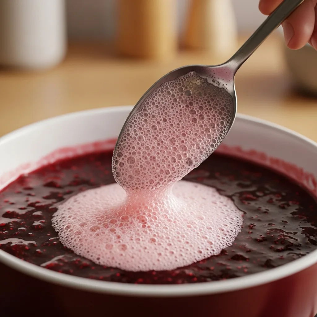 Kaynarken yüzeyde oluşan pembe köpükleri bir kevgir veya kaşık yardımıyla dikkatlice toplayıp atın. Bu işlem reçelin daha berrak olmasını sağlar.