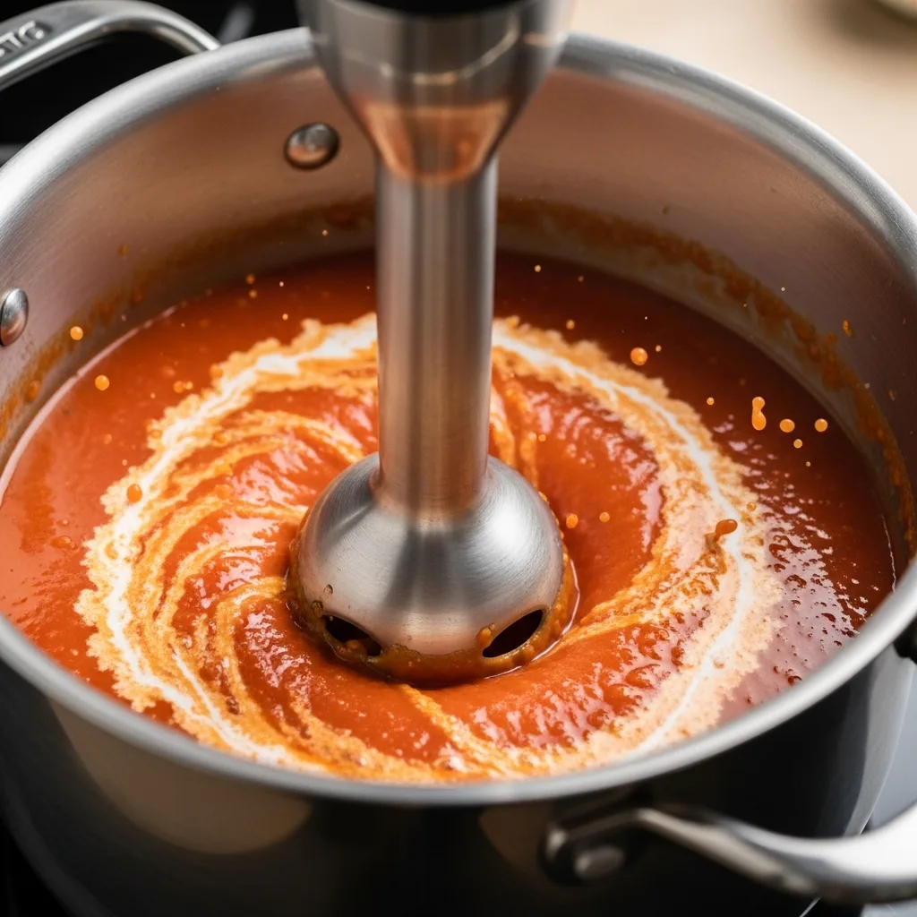 Çorbayı ocaktan alın ve pürüzsüz bir kıvam alana kadar el blenderından geçirin. Eğer blender yoksa, ince süzgeçten geçirebilirsiniz.
