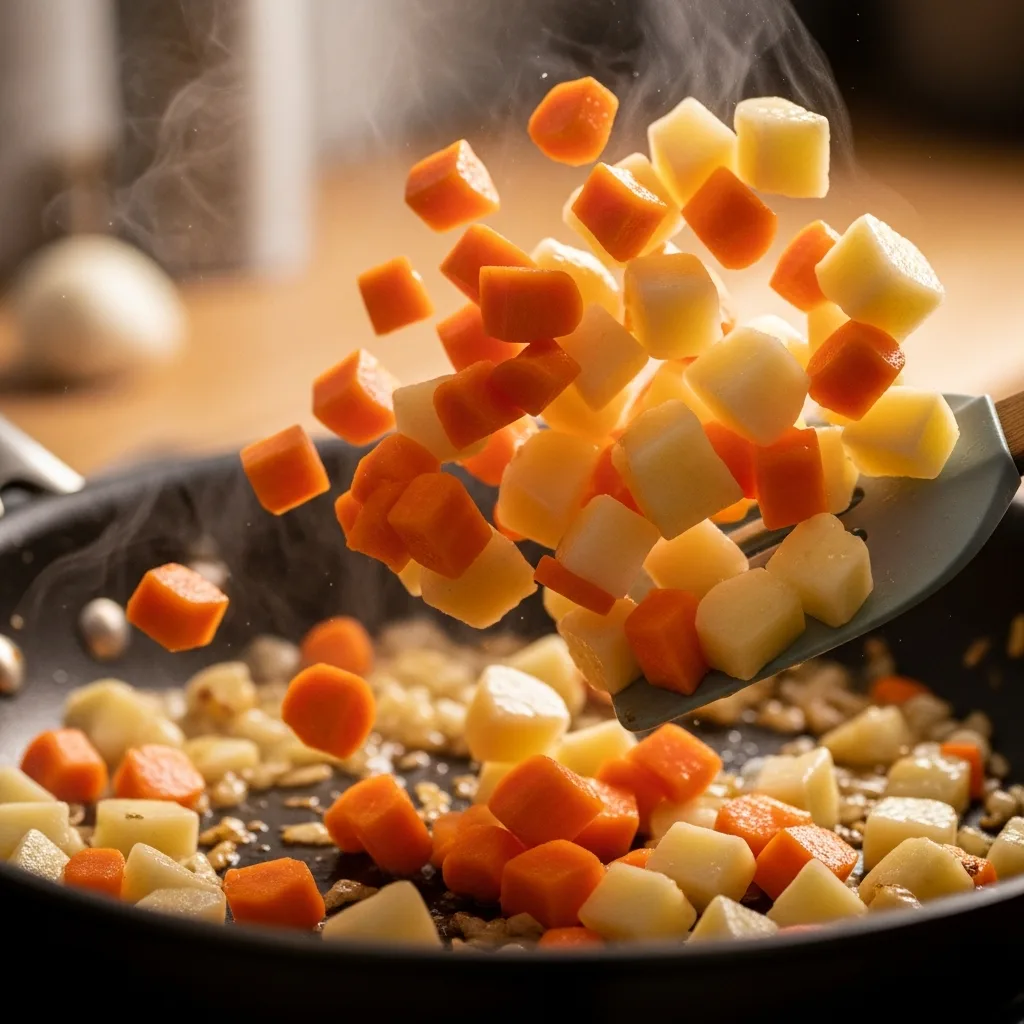 Küp küp doğradığınız havuç ve patatesleri ilave edip birkaç dakika daha kavurun.
