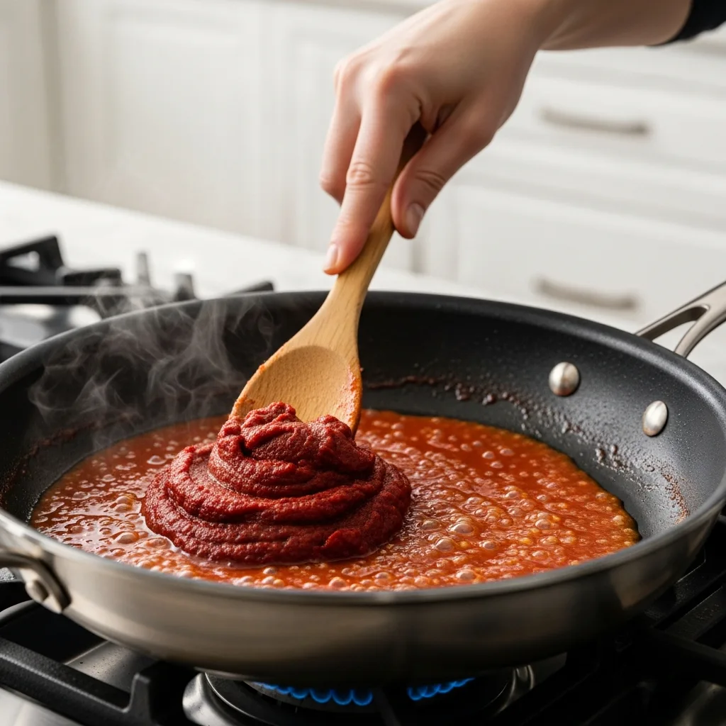 Domates salçasını ekleyip kokusu çıkana kadar 1 dakika karıştırın.