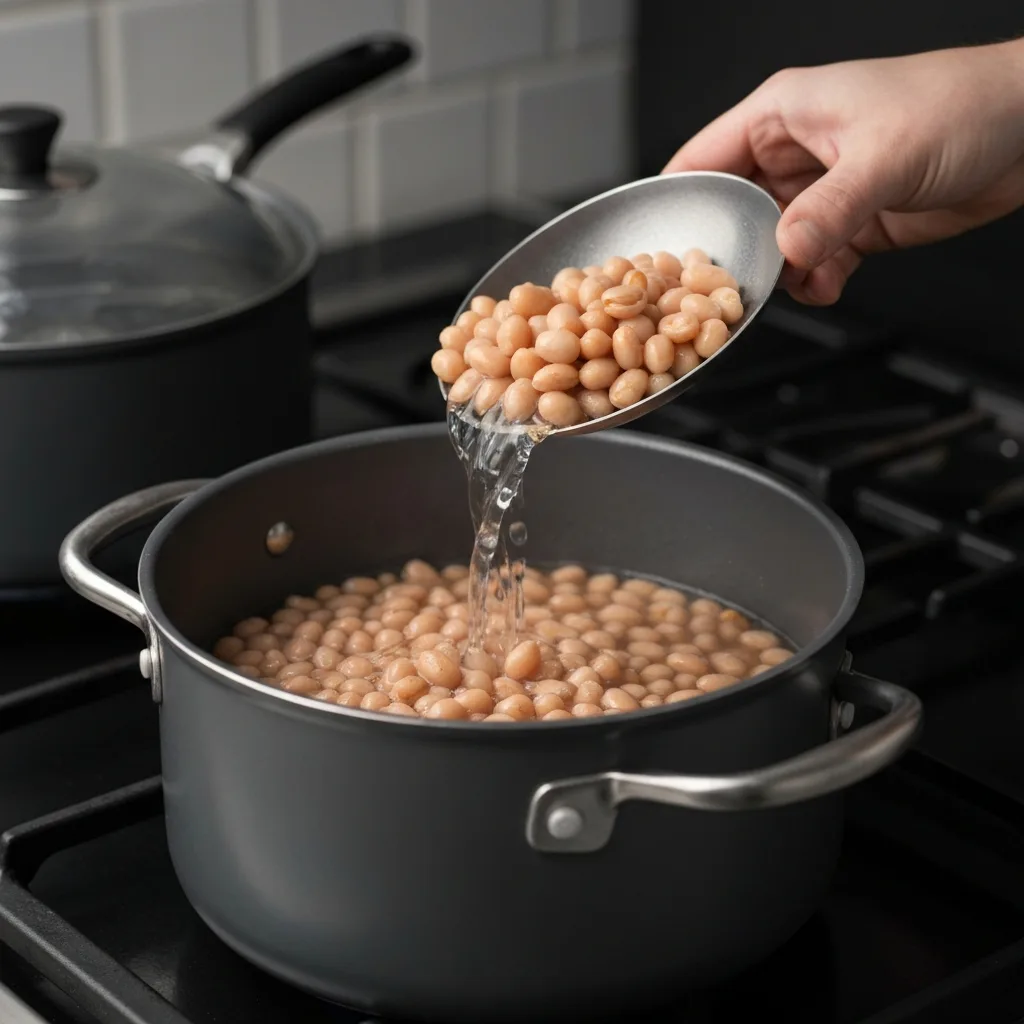 Kuru fasulyeleri bir gece önceden bol suda bekletin ve ertesi gün suyunu süzün.