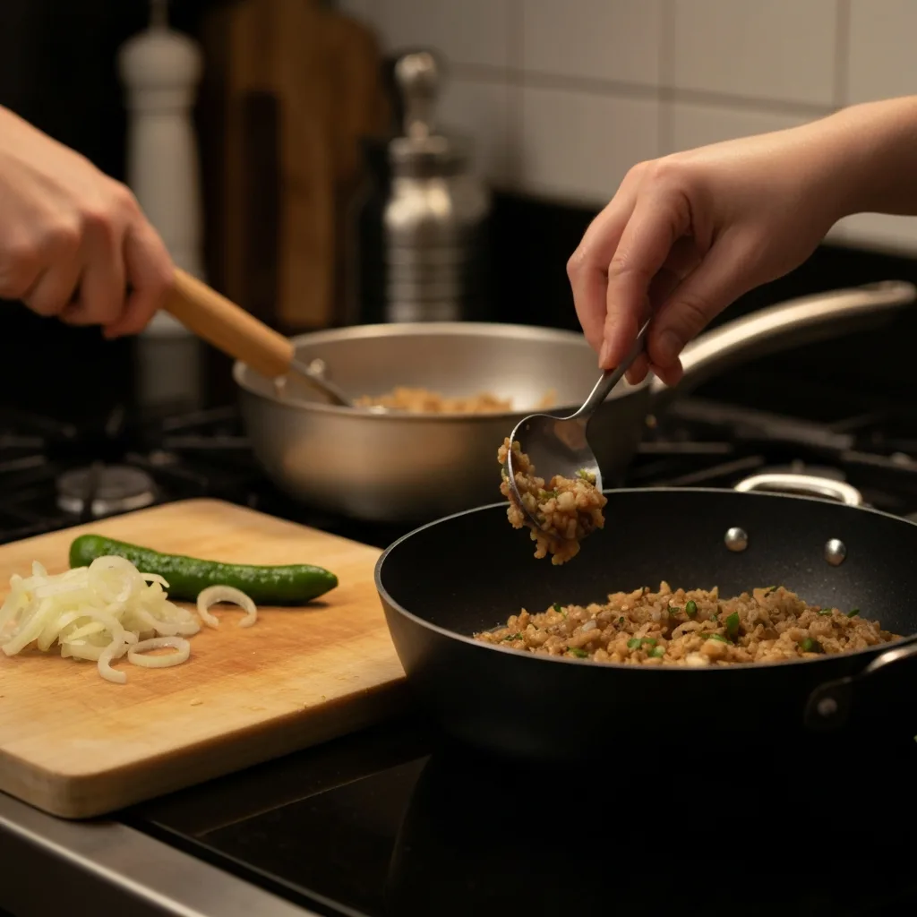 Yemeklik doğradığınız soğanları ekleyip pembeleşinceye kadar kavurmaya devam edin.