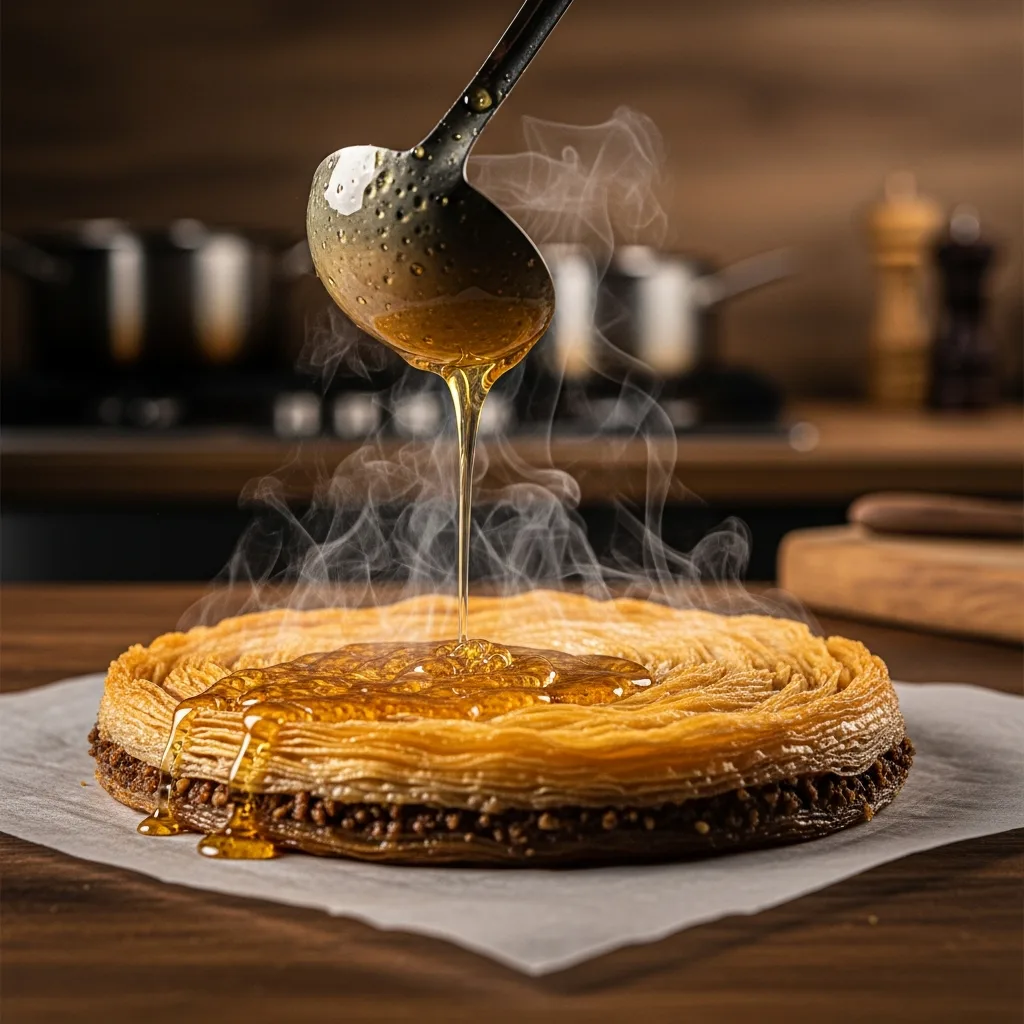 Fırından çıkan sıcak baklavanın üzerine soğuk şerbeti bir kepçe yardımıyla her yerine gezdirerek dökün. Şerbeti tamamen çekmesi için en az 4-5 saat dinlendirdikten sonra servis yapın.