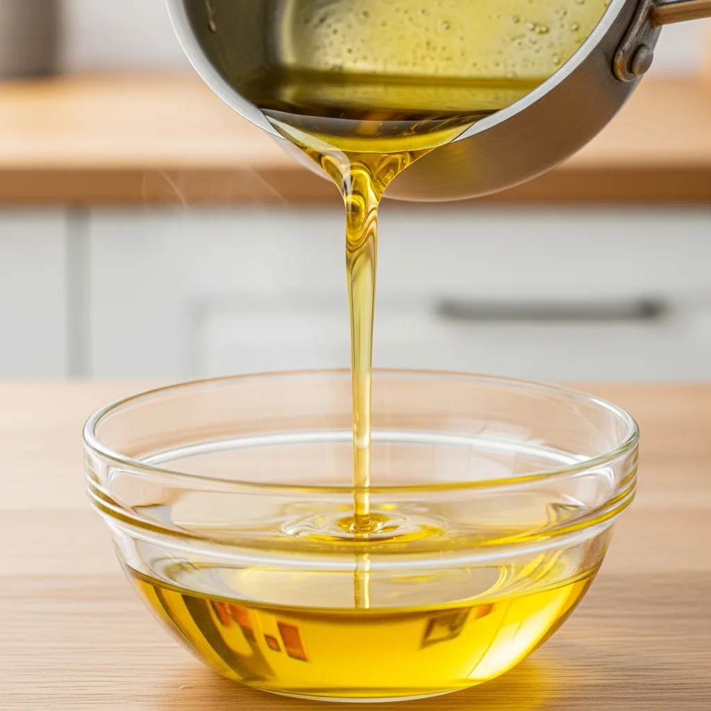 Tereyağını eritin, üzerindeki köpükleri alın ve sıvı yağ ile karıştırın.