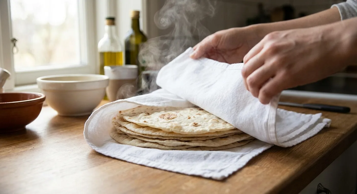Pişen lavaşları kurumamaları için temiz bir bezin arasına üst üste dizin. Tüm bezeler bitince sıcak servis yapın.