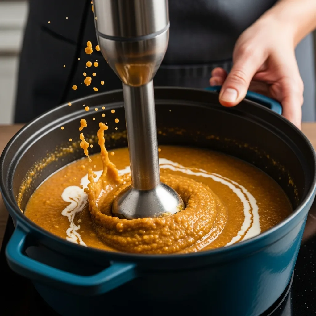 Çorba piştikten sonra pürüzsüz bir kıvam alması için blender'dan geçirin.