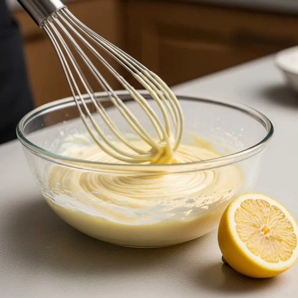 Ayrı bir kapta terbiye için yoğurt, yumurta sarısı, un ve limon suyunu pürüzsüz olana kadar çırpın.