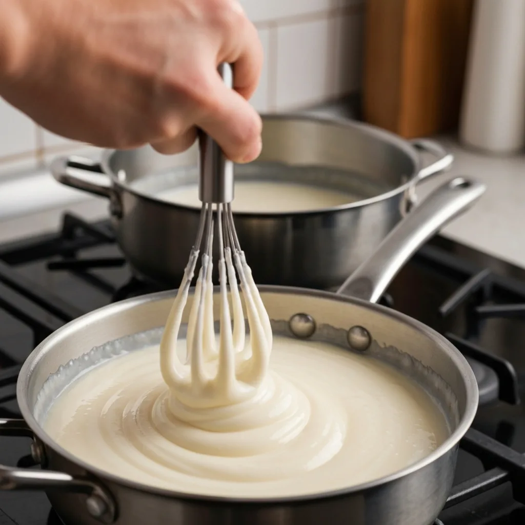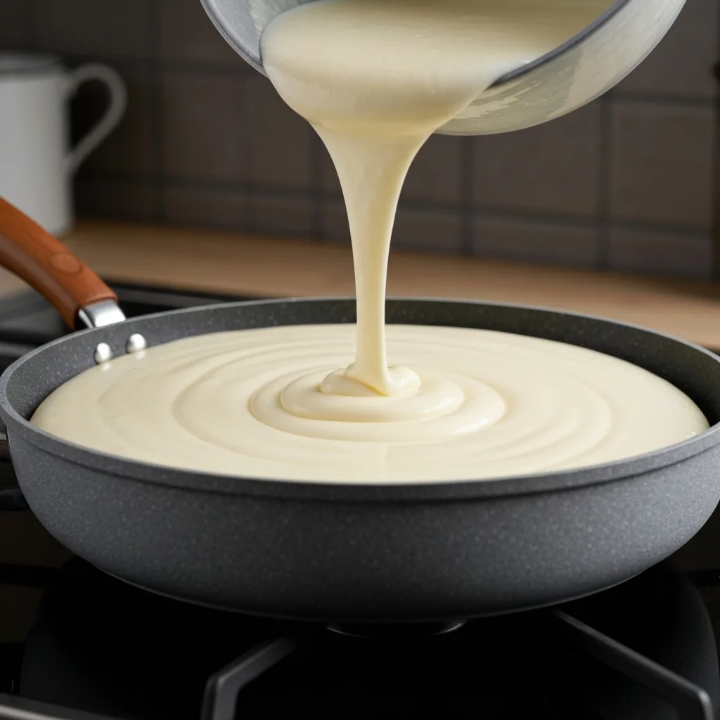 Muhallebi için, tereyağı ve vanilin hariç tüm malzemeleri bir tencereye alın. Pürüzsüz bir kıvam alana kadar çırpın ve ardından ocağa alıp sürekli karıştırarak koyulaşana kadar pişirin.