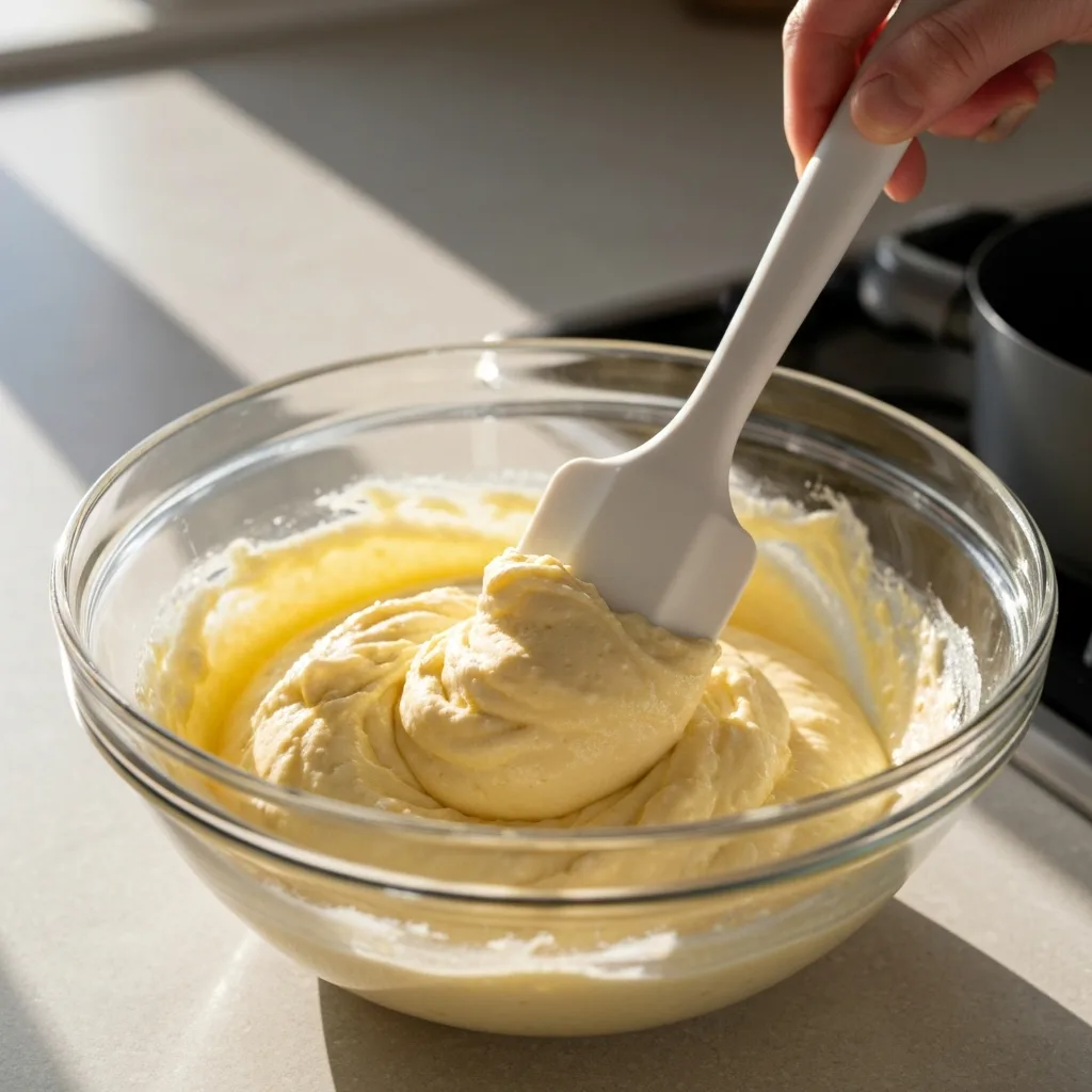 Un, kabartma tozu ve vanilini eleyerek karışıma ekleyin ve spatula ile alttan üste doğru söndürmeden karıştırın.