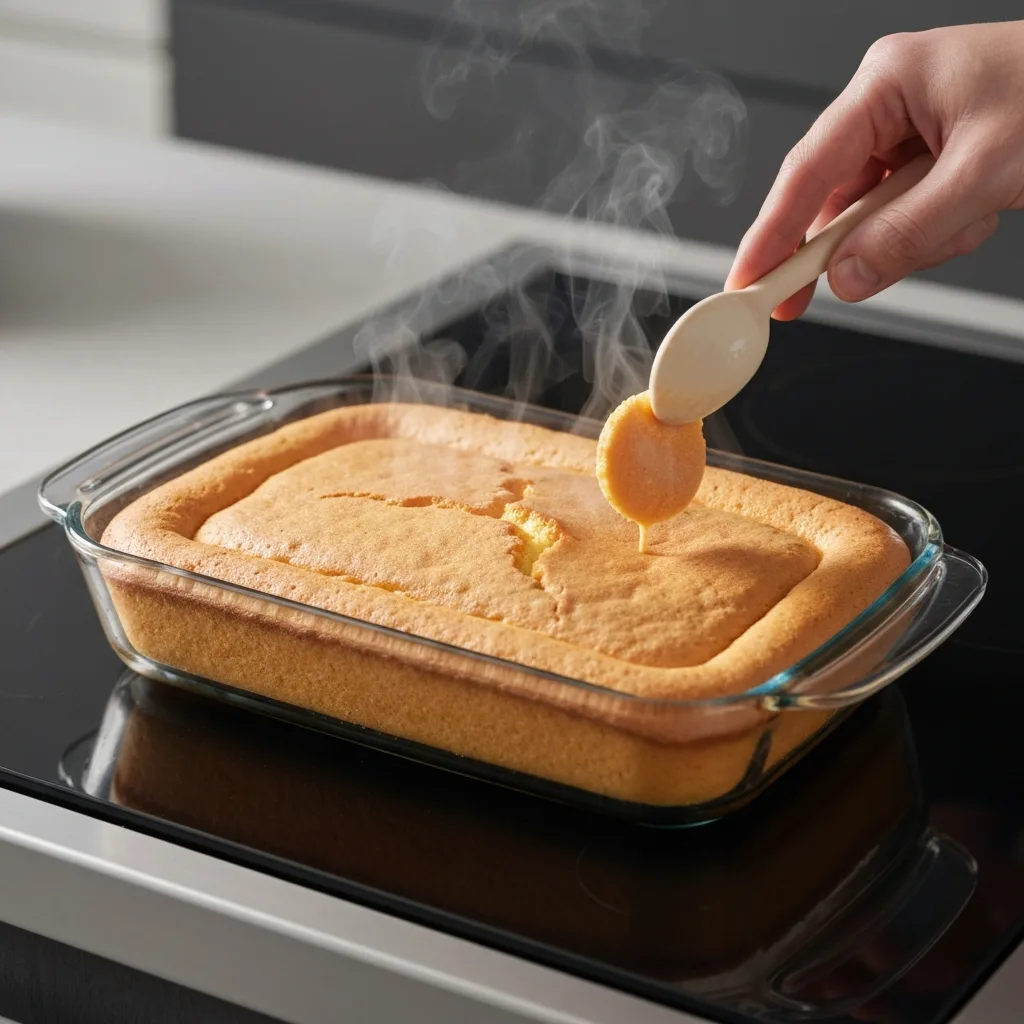 Kek fırından çıktıktan sonra 5 dakika ilk sıcağının çıkmasını bekleyin. Ardından bir kürdanla üzerine delikler açın ve soğuk sütü her yerine gelecek şekilde gezdirerek dökün. Kekin sütü çekmesi için kenara alın.