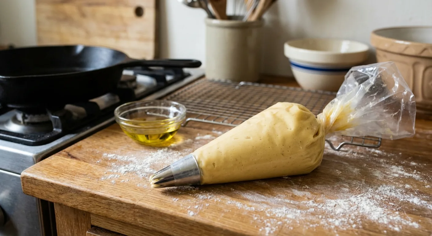 Hamuru dinlendirin: Hazırladığınız hamuru, ucuna yıldız duy takılmış bir sıkma torbasına doldurun ve 15 dakika kadar dinlenmeye bırakın.