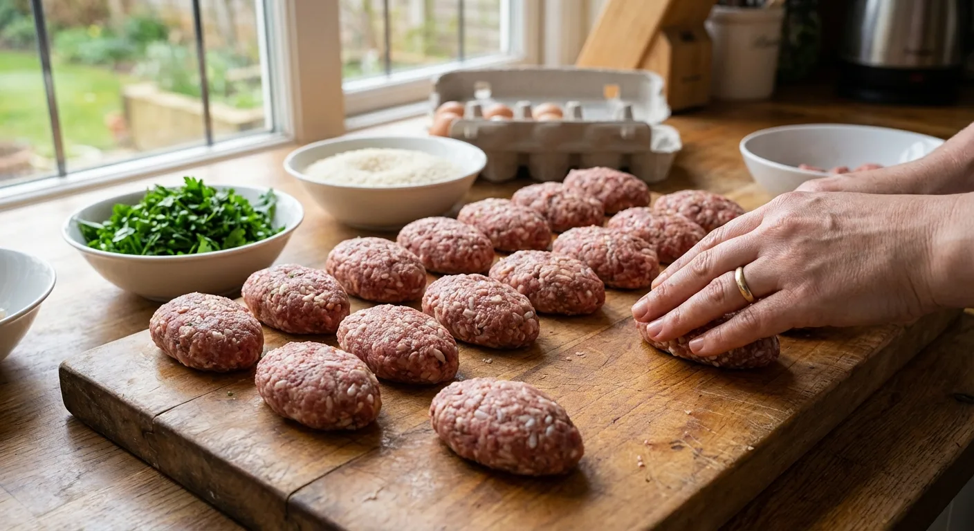 Şekil verdiğiniz köfteleri önce galeta ununa/una, ardından çırpılmış yumurtaya bulayın.