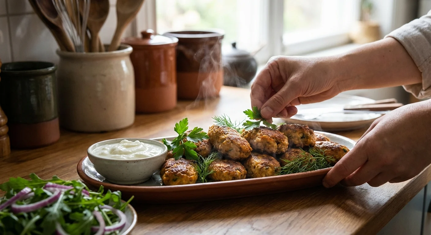 Kızaran köfteleri kağıt havlu serilmiş bir tabağa alarak fazla yağını süzdürün ve sıcak servis yapın.