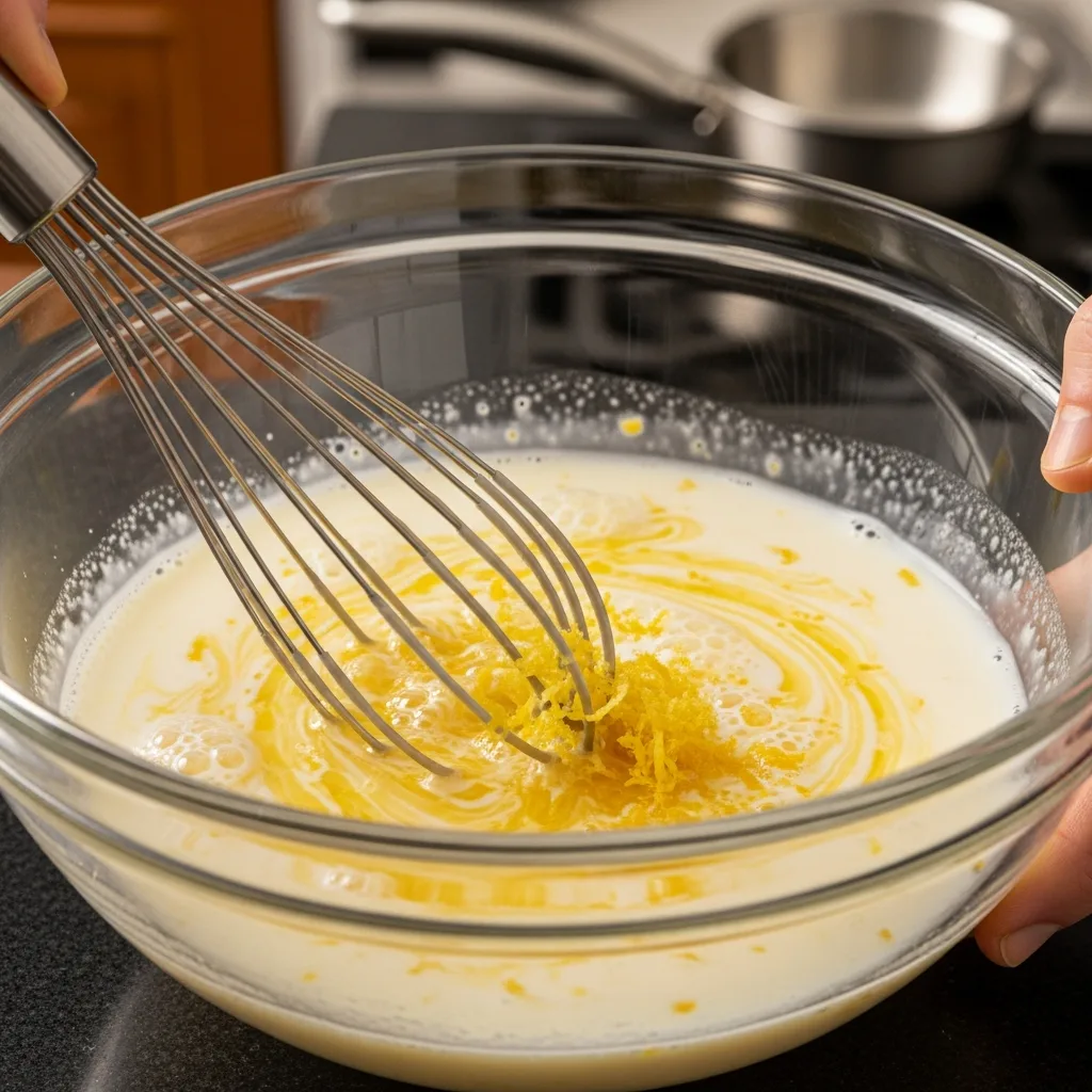 Sıvı yağ, süt, limon suyu ve rendelenmiş limon kabuğunu ekleyip düşük devirde kısa bir süre daha çırpın.