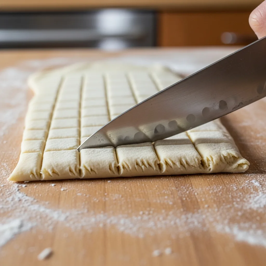 Açtığınız yufkayı bıçakla 1.5 cm'lik küçük kareler halinde kesin.