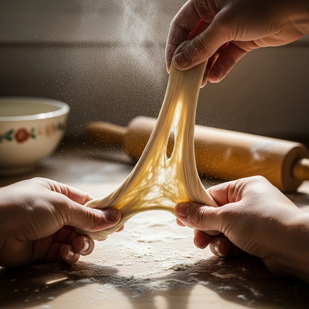 Dinlenen hamuru iki bezeye ayırın ve unlu tezgahta çok ince bir şekilde açın.