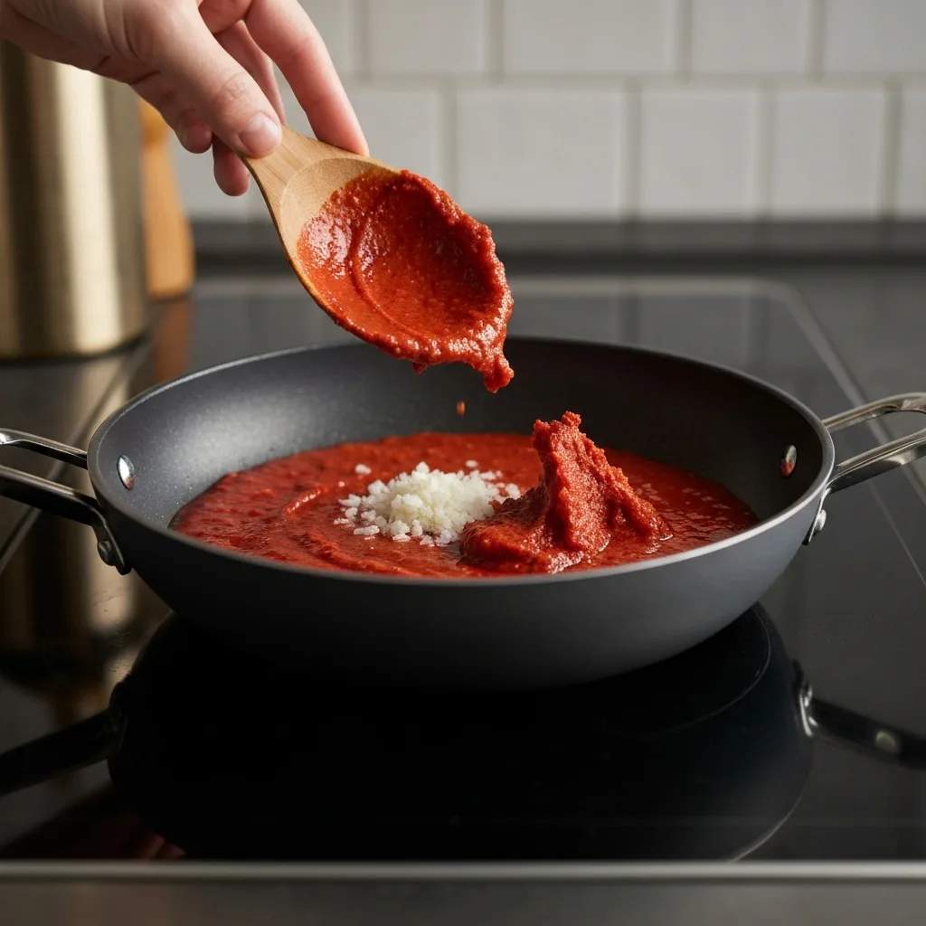 Sosu için tereyağını küçük bir tavada eritin. Salçayı ekleyip kokusu çıkana kadar kavurun. Nane ve pul biberi ekleyip ocaktan alın.