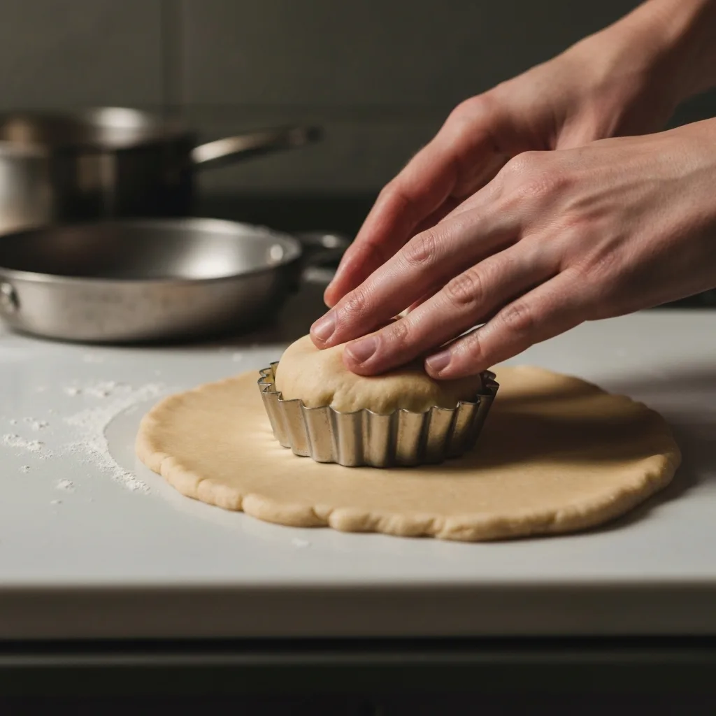 Dinlenen hamuru hafif unlanmış tezgahta merdane ile açın ve tartolet kalıplarınıza yerleştirin. Kenarlarını düzeltin ve tabanlarına bir çatalla delikler açın. Önceden ısıtılmış 180°C fırında üzerleri altın rengi olana kadar yaklaşık 15-20 dakika pişirin. Pişen tartolet tabanlarını soğumaya bırakın.