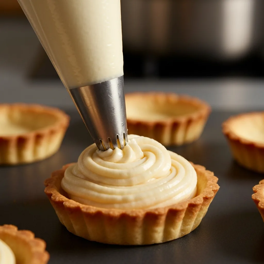 Soğuyan tartolet tabanlarının içini, soğumuş pastacı kreması ile doldurun.