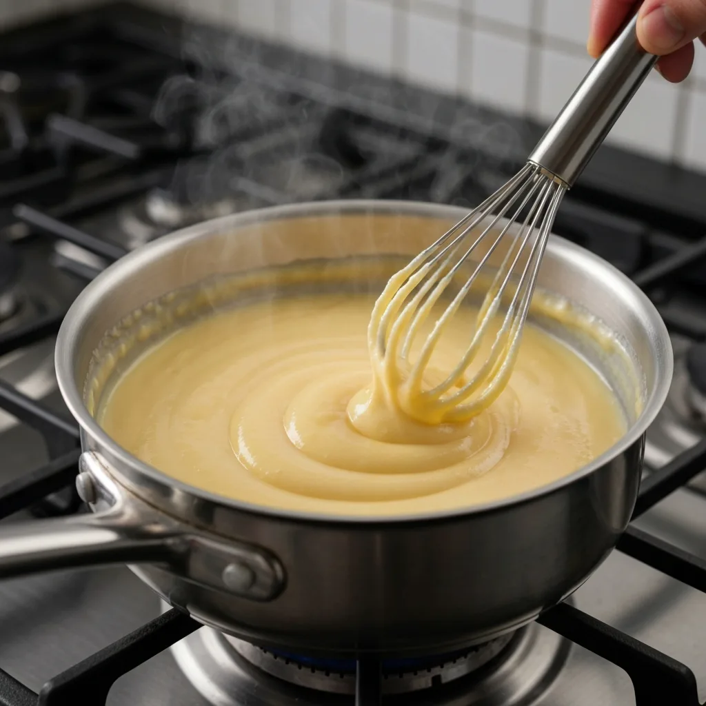Krema için; tencerede sütü ısıtın. Ayrı bir kapta yumurta sarıları, şeker, un ve nişastayı pürüzsüz olana kadar çırpın. Isınan sütten bir kepçe alıp yavaşça yumurtalı karışıma ekleyin ve sürekli karıştırarak ılıştırın. Ardından bu karışımı tenceredeki sütün tamamına ekleyin.
