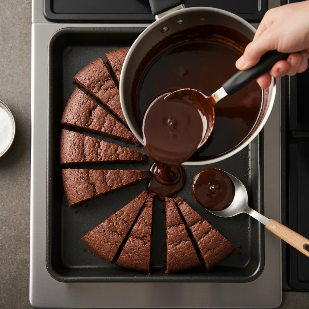 Fırından çıkan sıcak kekin ilk sıcağı geçtikten sonra dilimleyin ve üzerine sıcak sosu her yerine gelecek şekilde dökün. Kekin sosu çekmesi için dinlenmeye bırakın.