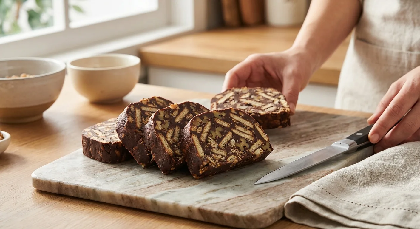 Sertleşen pastayı dilimleyerek servis edin. Afiyet olsun!