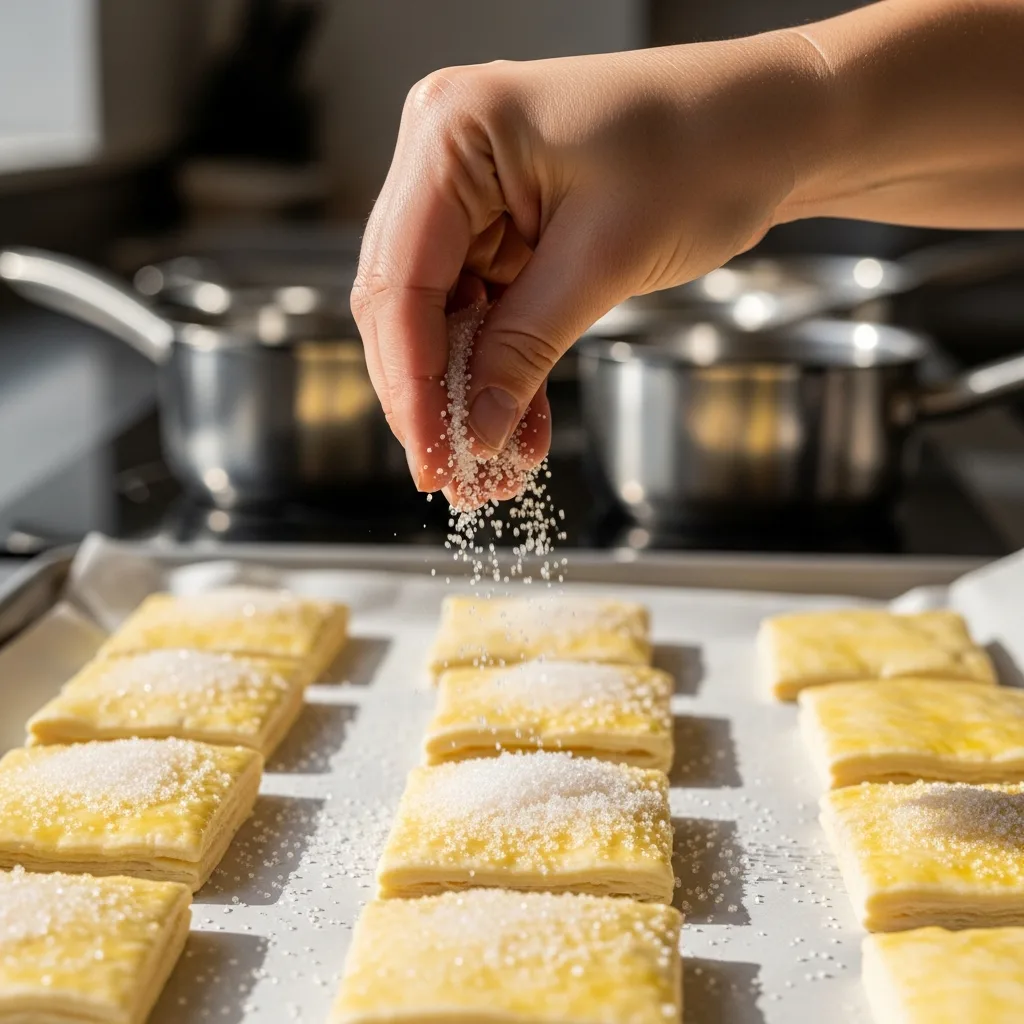 Milföy hamurlarını yağlı kağıt serilmiş fırın tepsisine dizin. Üzerlerine çatalla delikler açın ve yumurta sarısı sürün. Önceden ısıtılmış 180°C fırında üzerleri kızarana kadar yaklaşık 15-20 dakika pişirin ve soğumaya bırakın.
