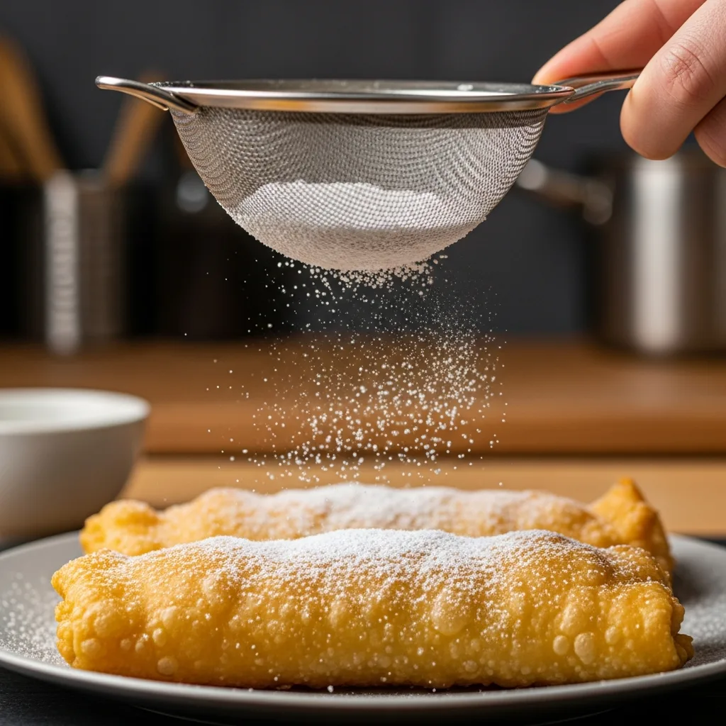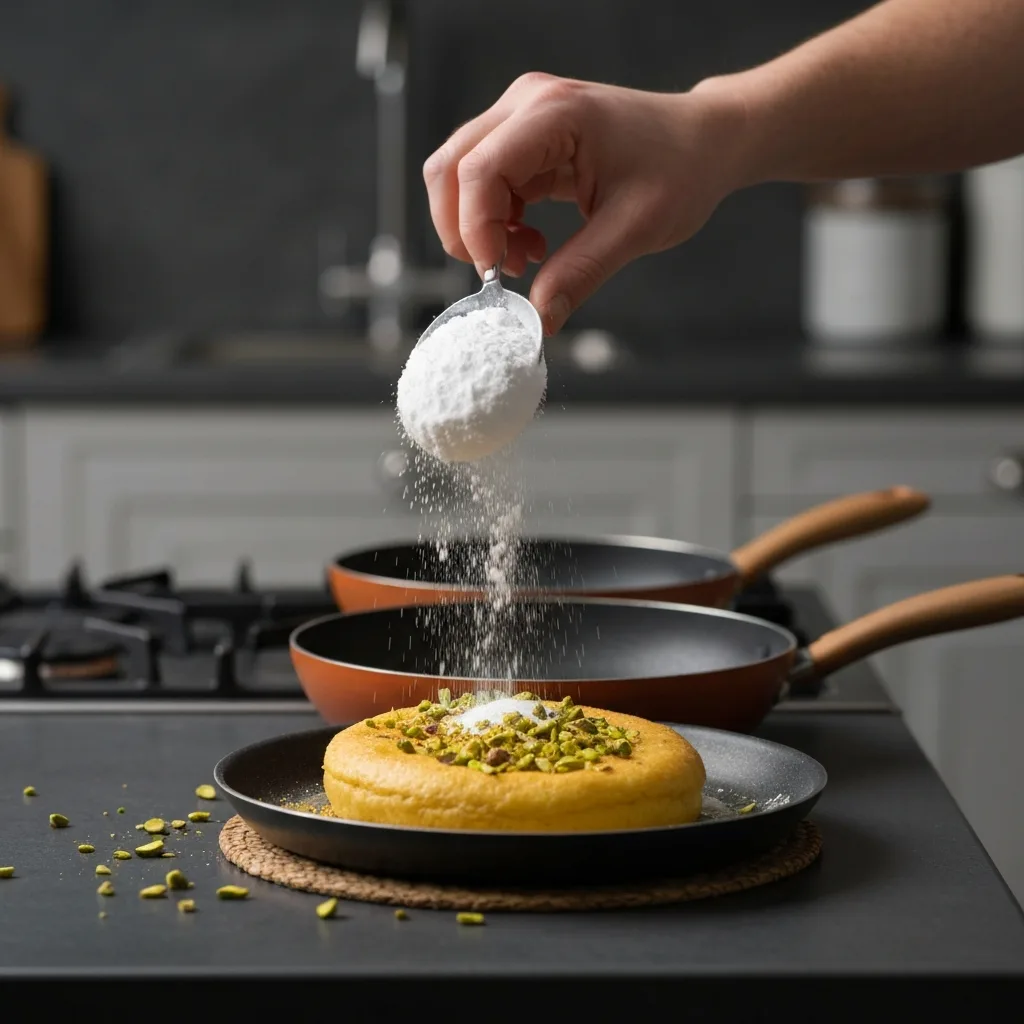 Servis etmeden önce üzerine bolca pudra şekeri serpin. İsteğe bağlı olarak meyve veya Antep fıstığı ile süsleyebilirsiniz.