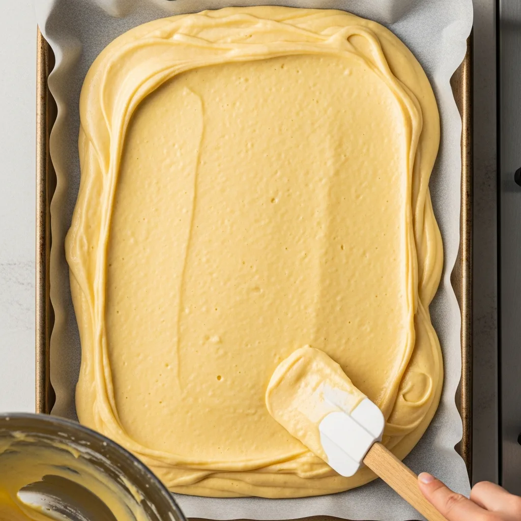 Kek için, yumurta ve şekeri bir kapta köpük köpük olana kadar çırpın. Un, kabartma tozu ve vanilyayı eleyerek ekleyin ve spatula ile yavaşça karıştırın.