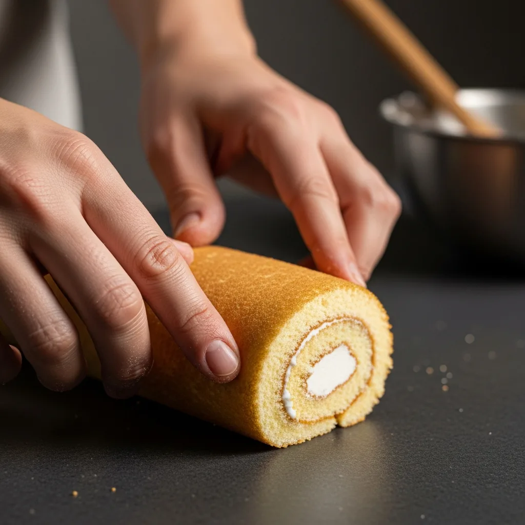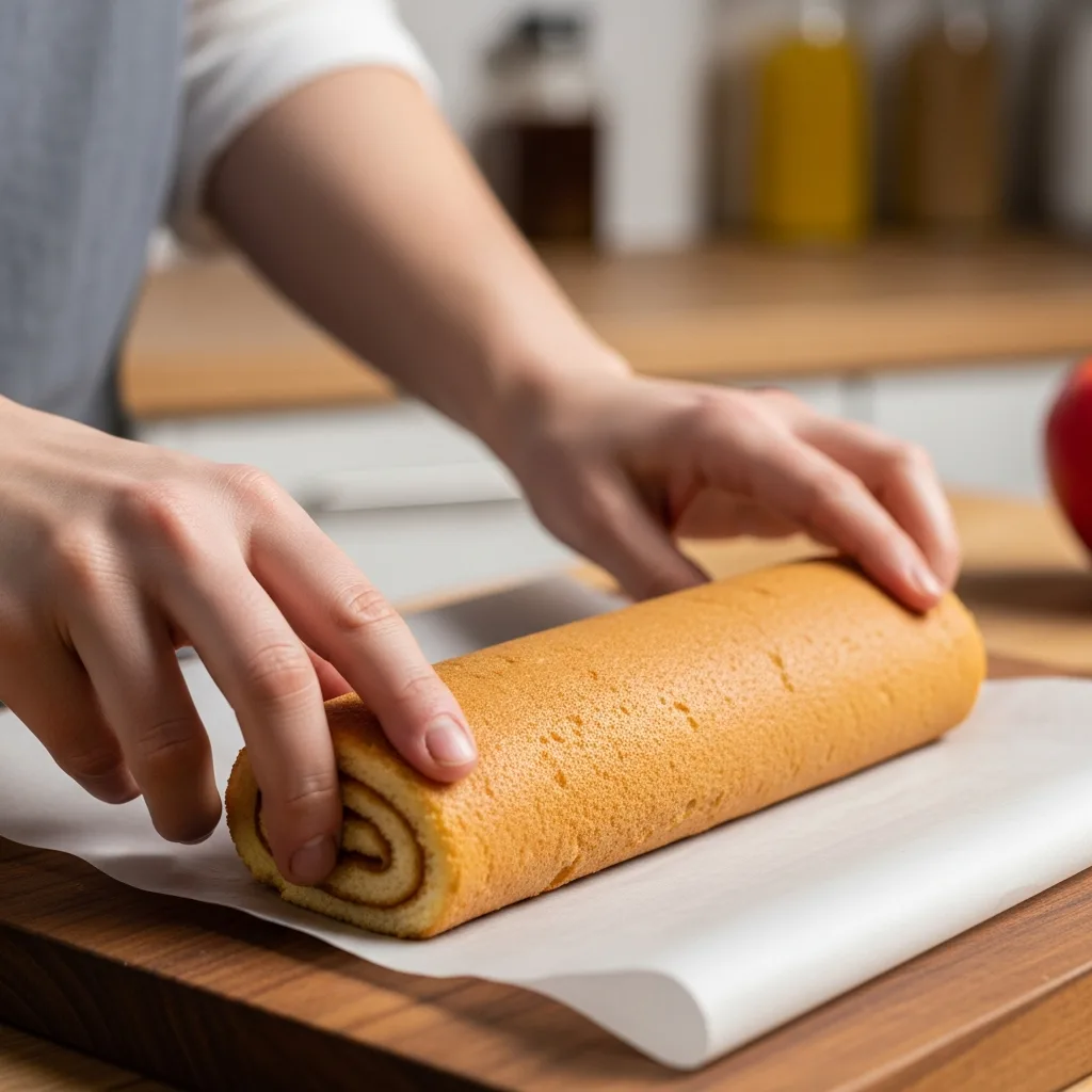Fırından çıkan sıcak keki, üzerine başka bir yağlı kağıt serip dikkatlice rulo şeklinde sarın ve bu şekilde soğumasını bekleyin.