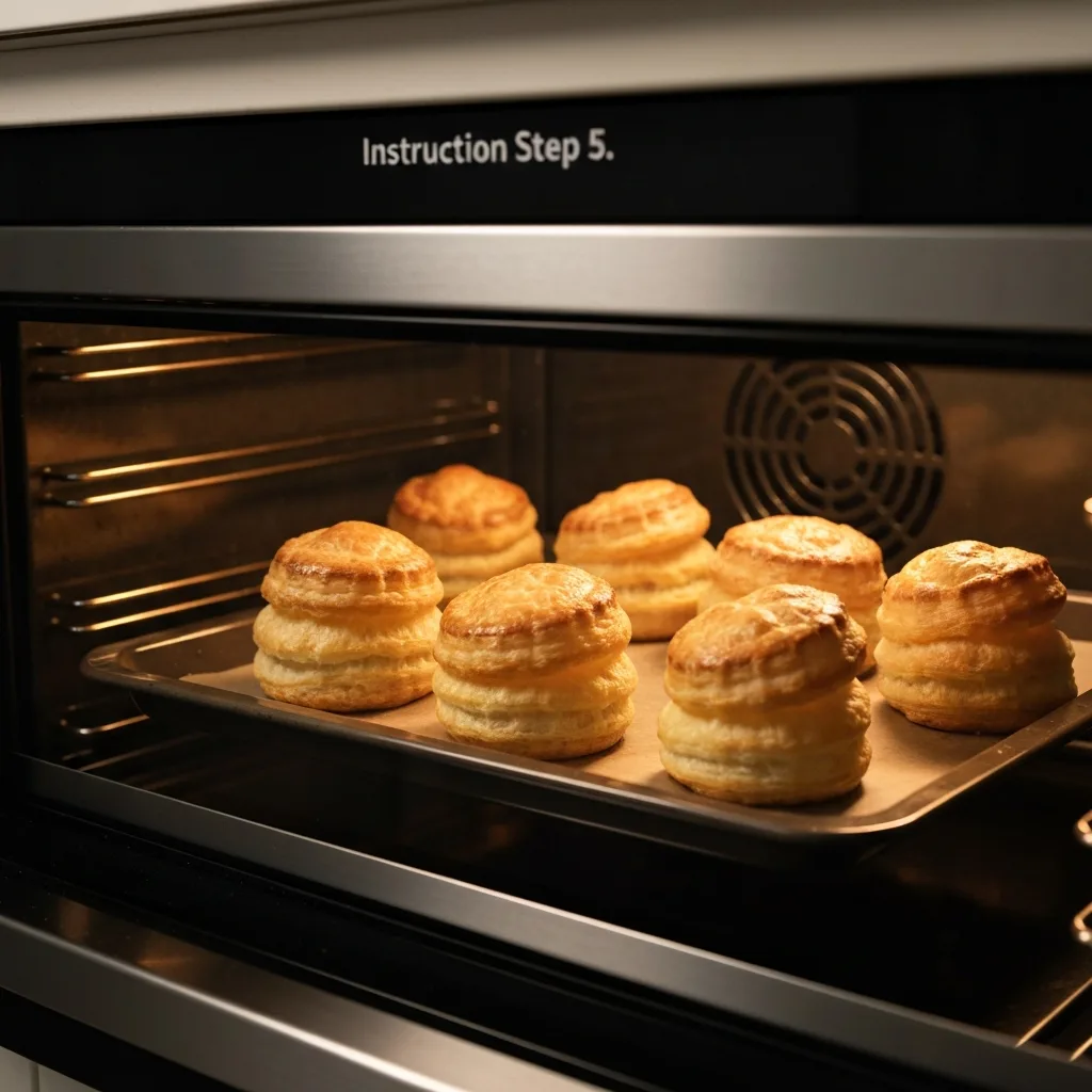 Hazırladığınız volovanları yağlı kağıt serilmiş fırın tepsisine dizin. Önceden ısıtılmış 180°C fırında kabarıp üzerleri altın rengi olana kadar yaklaşık 15-20 dakika pişirin.