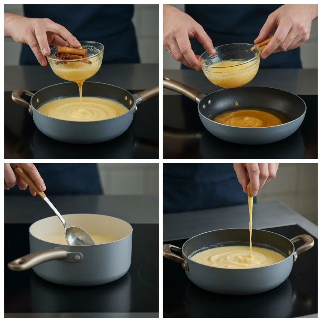 Isınan sütün bir kısmını yavaşça yumurtalı karışıma ekleyerek temperleyin, ardından tüm karışımı tencereye geri dökün.