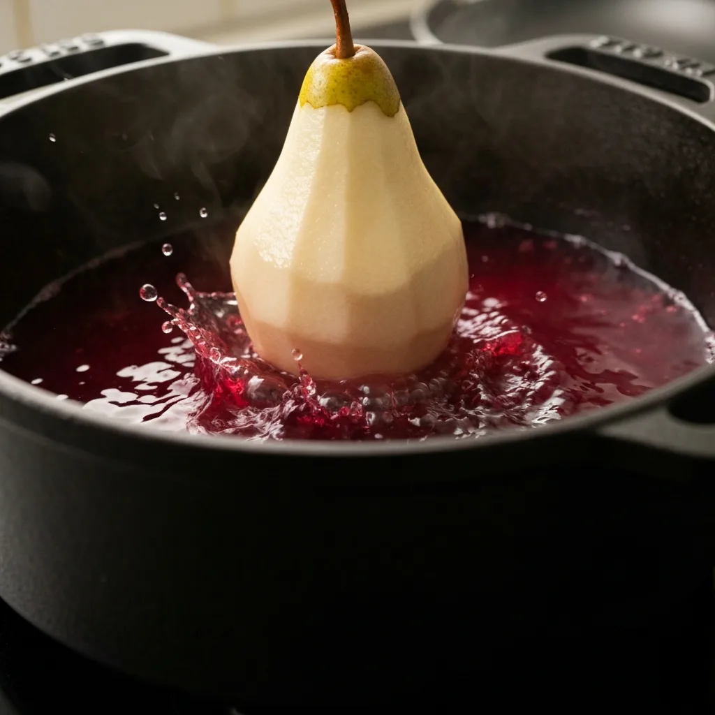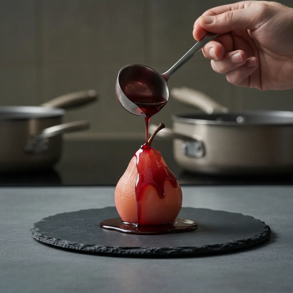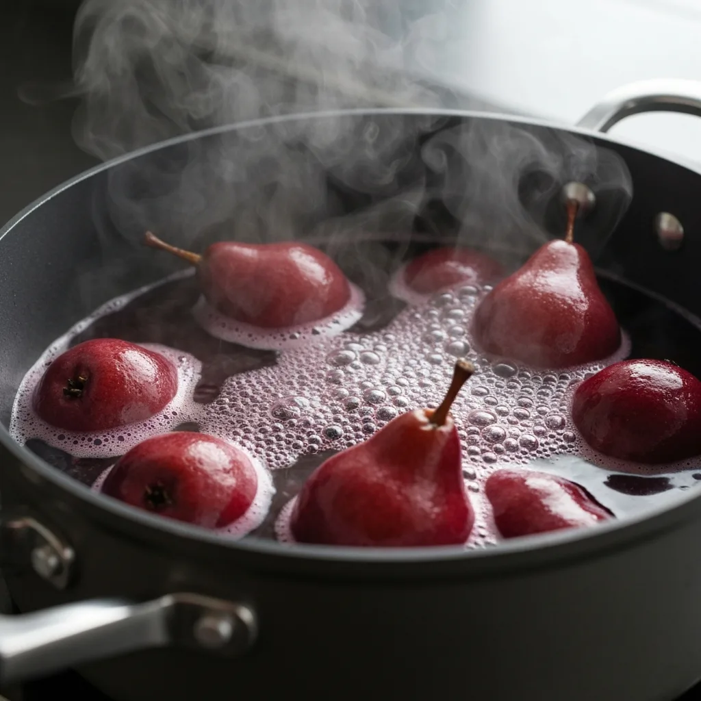 Armutlar yumuşayana ve rengi şarabın rengini alana kadar yaklaşık 25-30 dakika boyunca, ara sıra çevirerek yavaşça pişirin (poşe edin).