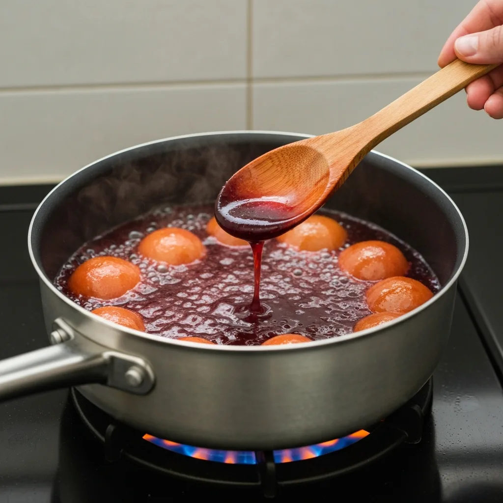 Şeker eriyene kadar orta ateşte karıştırın ve şerbeti kaynamaya bırakın.
