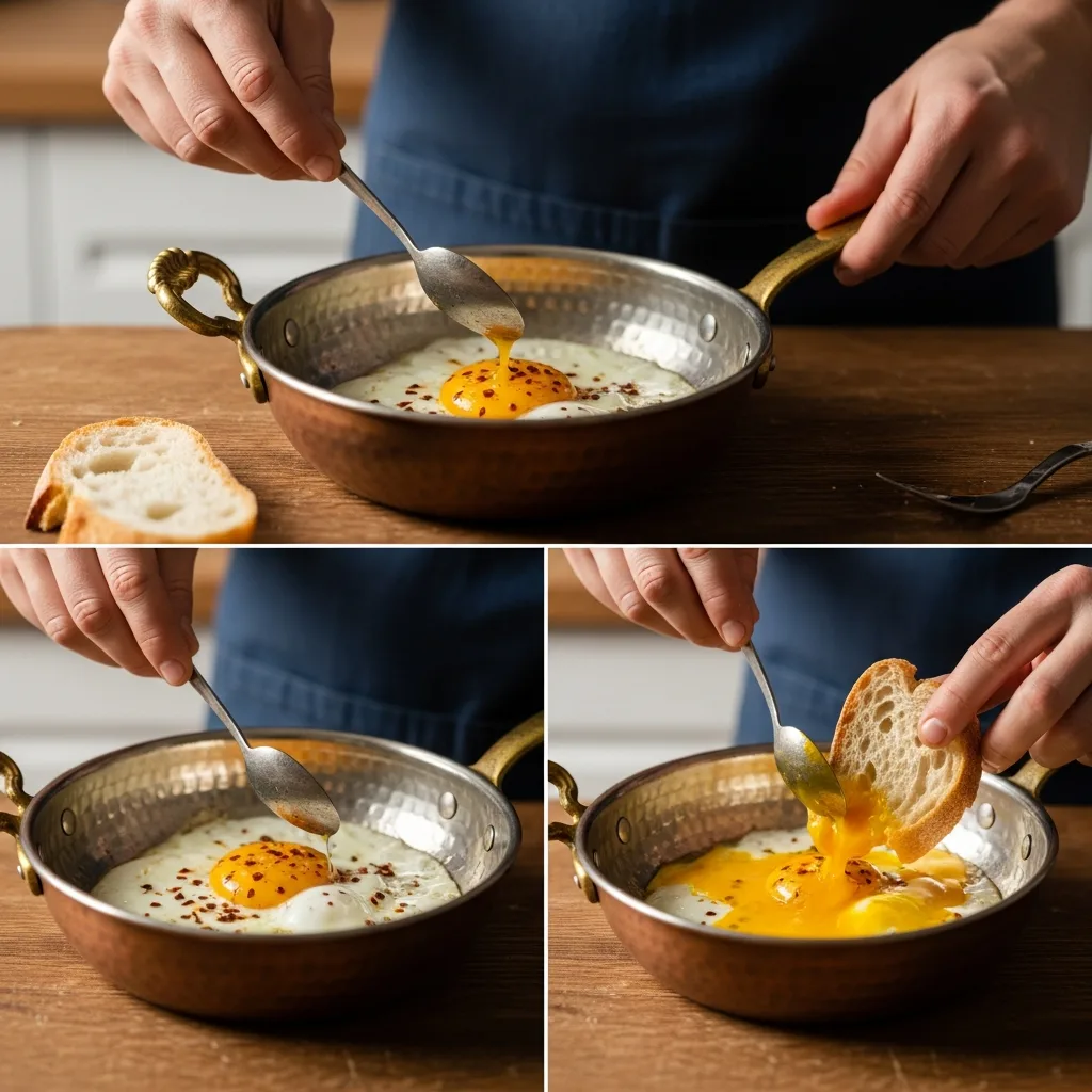 Yumurta beyazları tamamen katılaşana ve opak bir renk alana, sarıları ise damak zevkinize göre akışkan kalana kadar yaklaşık 2-3 dakika pişirin.