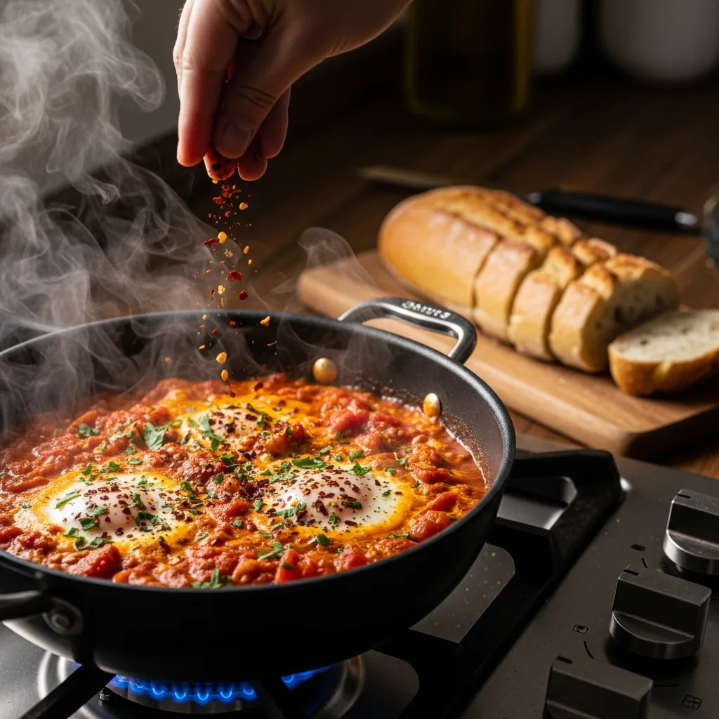 Ocağın altını kapatın, üzerine pul biber serpiştirip sıcak olarak, yanında taze ekmekle hemen servis edin.
