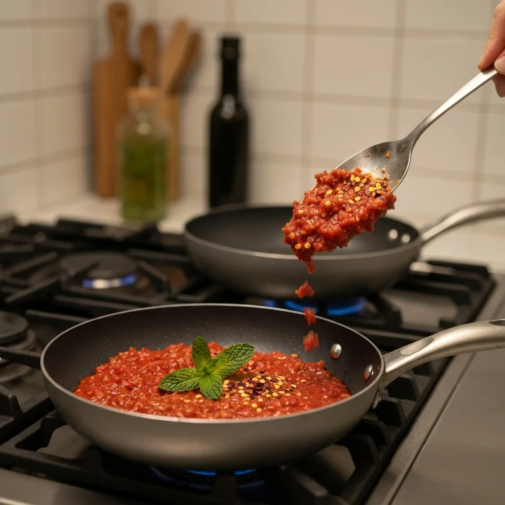 6. **Sosu hazırlayın:** Ayrı bir tavada tereyağını eritin. Salçayı ekleyip kokusu çıkana kadar kavurun. Nane ve pul biberi ekleyip karıştırın ve ocaktan alın.