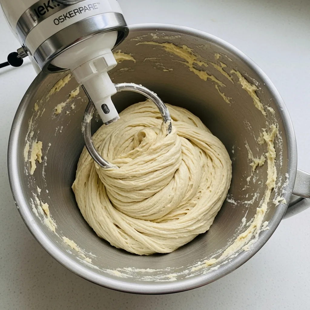 Hamur için; oda sıcaklığındaki tereyağı, pudra şekeri ve yumurtayı bir kapta karıştırın.