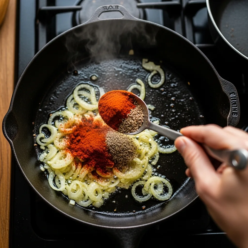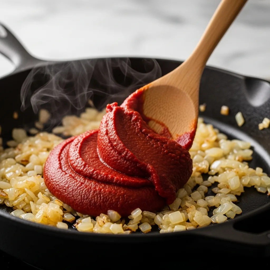 Kavrulan soğanlara salçayı ekleyip kokusu çıkana kadar 1-2 dakika daha kavurmaya devam edin.