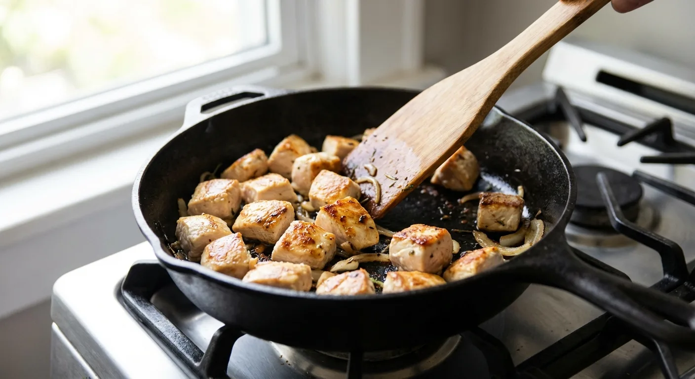 Tüm malzemeyi birlikte 2-3 dakika daha pişirerek sosun tavuklarla bütünleşmesini sağlayın. Üzerine taze kekik veya kıyılmış maydanoz serperek sıcak servis yapın.