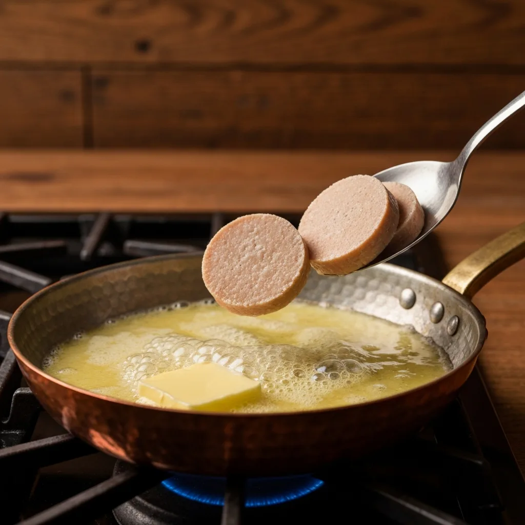 Halka şeklinde doğradığınız sucukları tavaya ekleyin ve her iki tarafı da hafifçe kızarana kadar yaklaşık 1-2 dakika pişirin.
