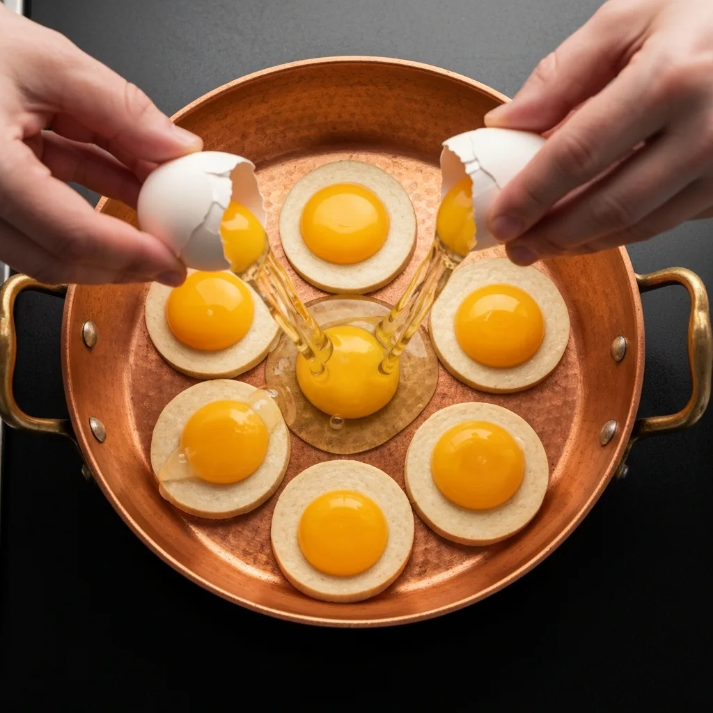 Sucukların arasındaki boşluklara yumurtaları dikkatlice kırın. Yumurta sarılarının bütün kalmasına özen gösterin.
