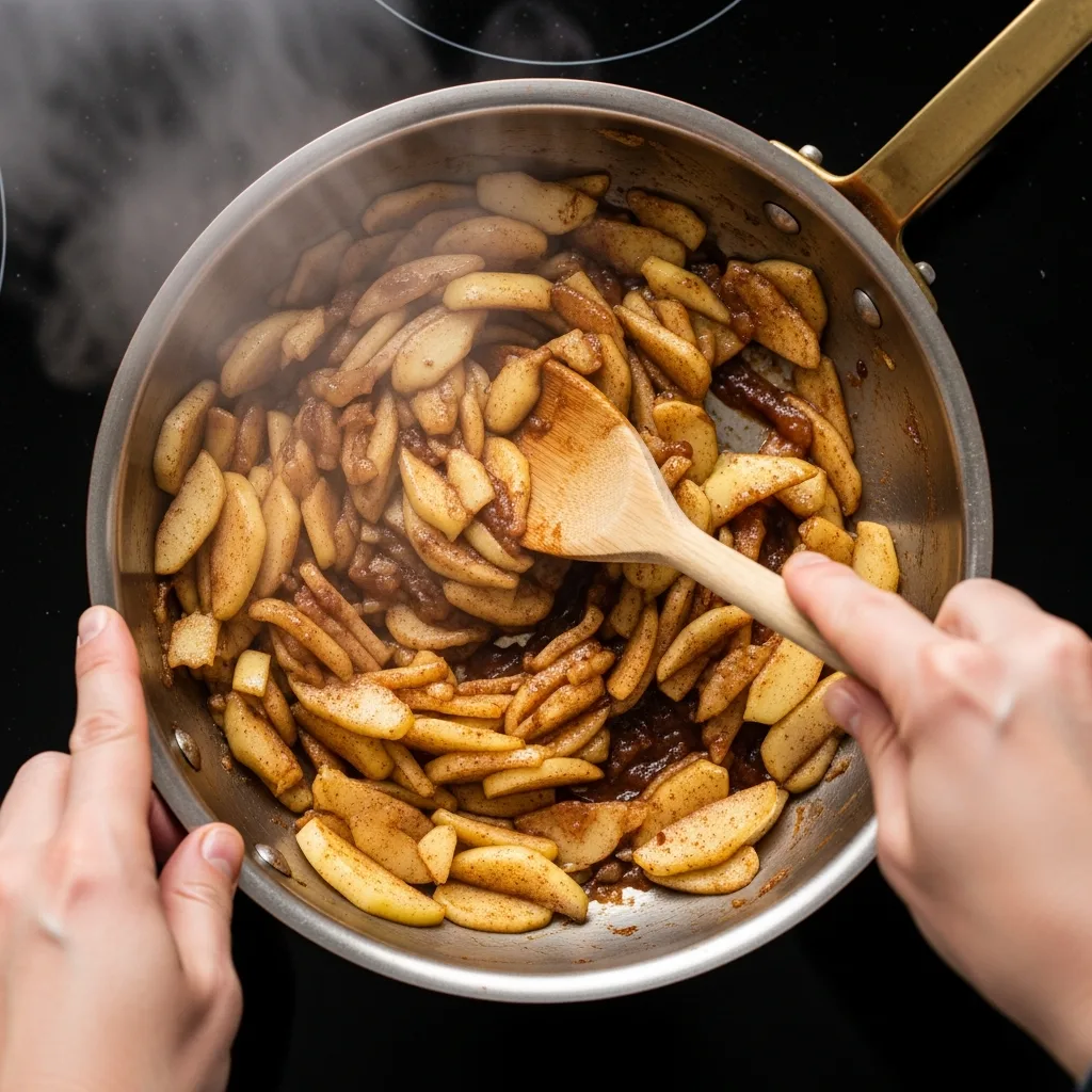 İç harcı için elmaları soyup rendeleyin. Bir tavaya alıp üzerine şekeri ekleyin ve elmalar suyunu salıp çekene kadar orta ateşte pişirin. Ocaktan alıp tarçın ve cevizi ekleyip karıştırın, soğumaya bırakın.
