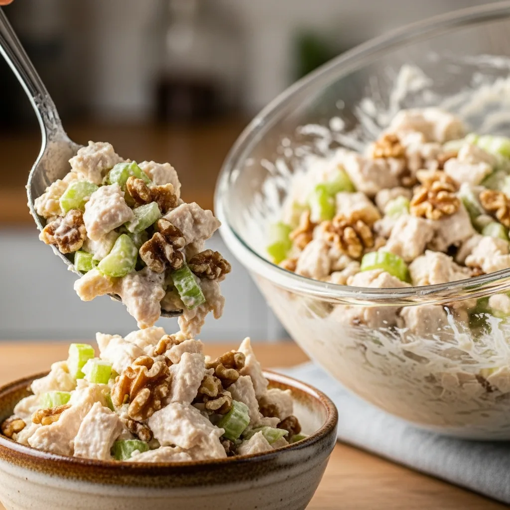 Servis etmeden hemen önce isteğe bağlı olarak ceviz içini ekleyip karıştırın ve soğuk olarak servis yapın.