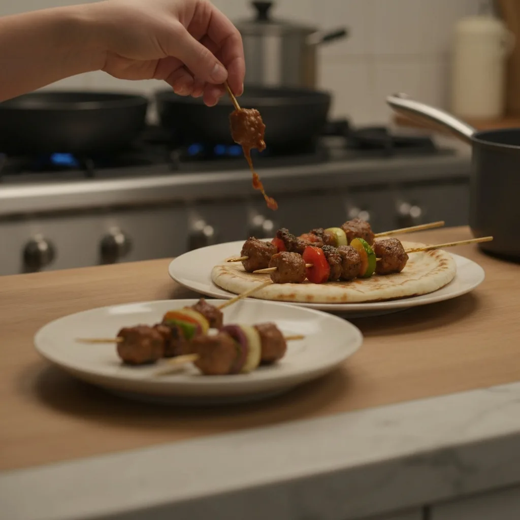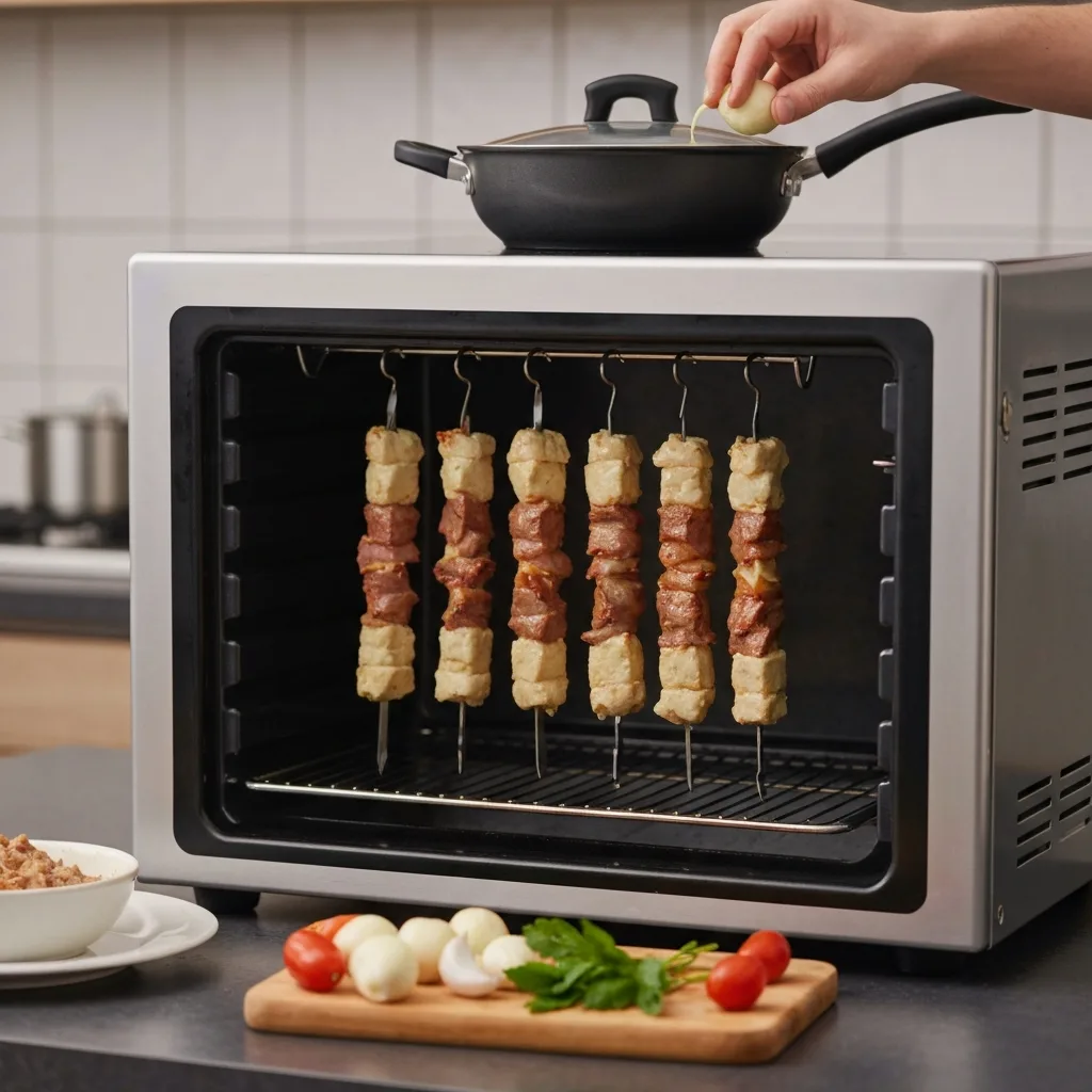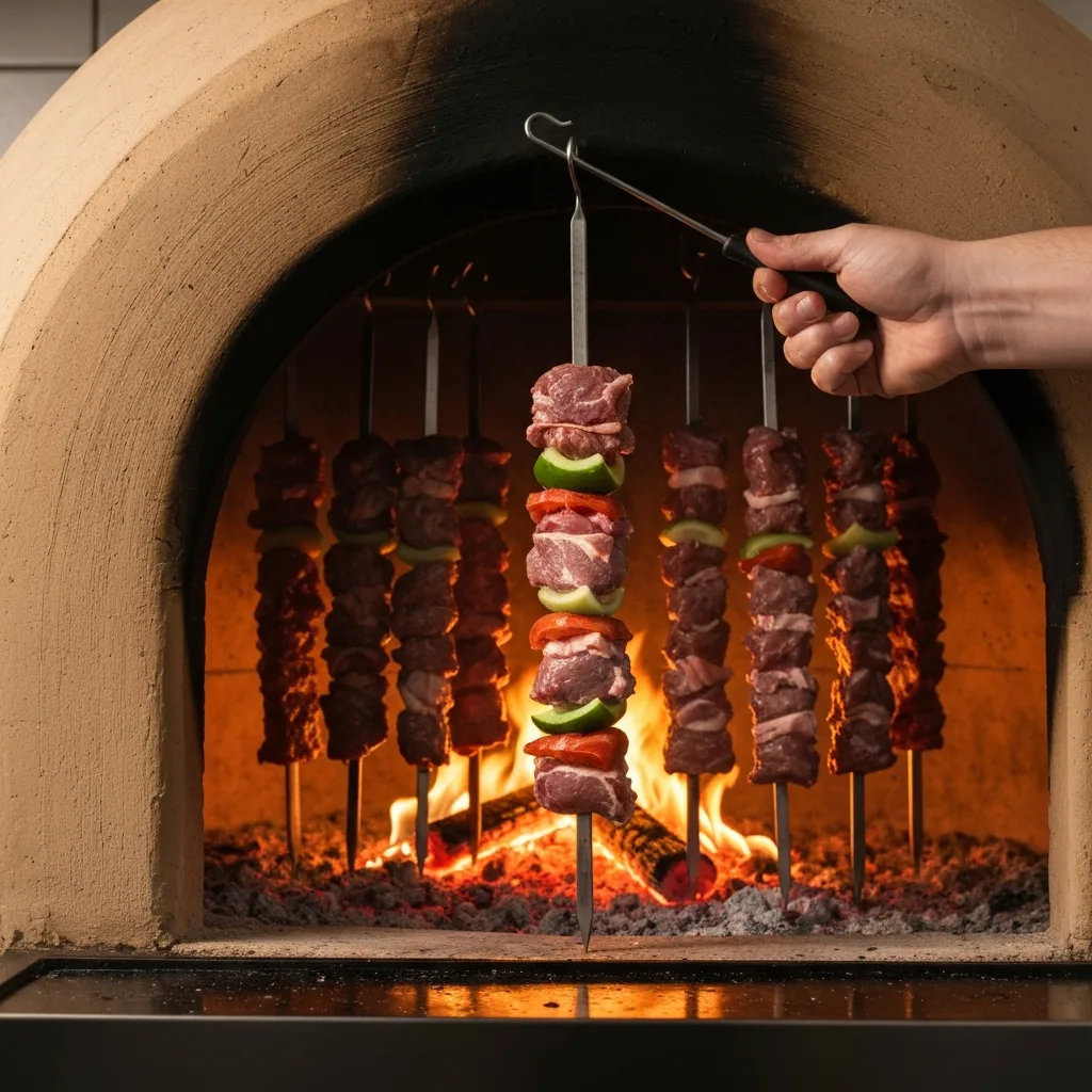 Hazırladığınız şişleri, bu kebap için özel olarak tasarlanmış olan ocağın içine dikey olarak asın.