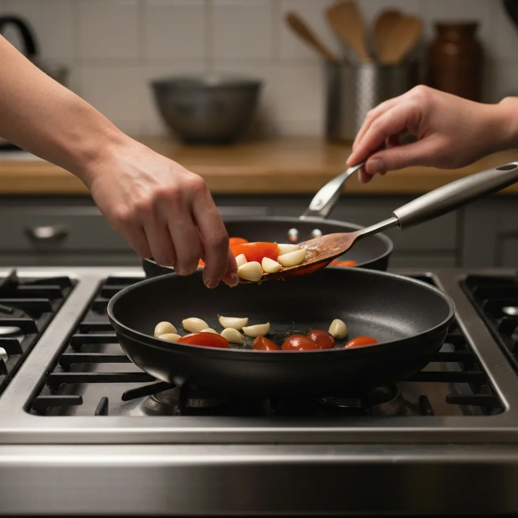 Ocağın en altındaki tepsiye soyulmuş sarımsakları ve kalan domates dilimlerini yayın. Bu tepsi, pişerken et ve sebzelerden akan yağları toplayacaktır.